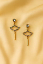 Delicate yet striking. the crystal Harmony Drop Earrings are designed with a shimmering crystal top, a half fan encrusted with rhinestones, and a sleek golden road dangle. These earrings exude sophistication perfect for festive occasion parties or gifting.
