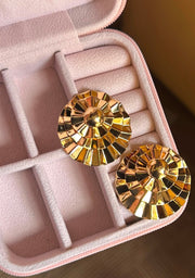 Bold, radiant, and undeniably chic-- our solara spiral statement studs are designed to make you glow. crafted in a multi-layered and disc. Style wiht high-shine gold plating, these earrings bring a dynamic flair to any outfit. perfect for wardrobe, parties or elevating your everyday glam.