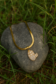 Crystal Glove Pendant Necklace with Gold Flat Chain