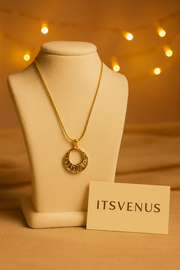 Inspired by the radiant sun, the Solar Halo Pendant Necklace is a bold yet elegant piece that adds warmth and brilliance to your neckline. The textured circular charm captures and reflects light beautifully, making it the perfect statement for layering or wearing solo.