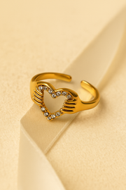 Wrapped in love — the Amora Ring features two graceful hands forming a sparkling heart, symbolizing care, warmth, and connection. Crafted in gold-tone brass and encrusted with delicate CZ stones, this ring is both playful and meaningful — perfect as a gift of affection.