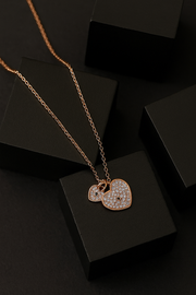 Celebrate love in its purest form with the Double Heart Diamond Pendant — a delicate gold-tone chain featuring two beautifully crafted heart charms, encrusted with shimmering cubic zirconia.
