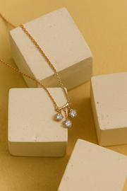 Delicate, minimal, and refreshingly feminine — the Triple Bloom Necklace is a graceful accessory featuring three petite flower-shaped charms adorned with sparkling CZ stones.