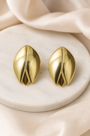 Sleek, Structured, and nature inspired the Zyra Sculpted Leaf Studs offer an elegant twist on botanical forms. The symmetrical shape and high shine gold finish make these studs a statement in simplicity and sophistication, perfect for workwear or elevated everyday looks.